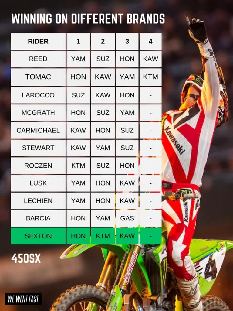 - Chase Sexton is the 11th rider to win on 3 different brands.